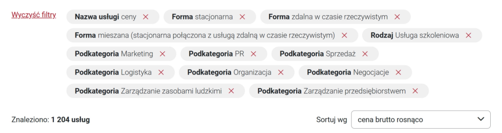 Zróbmy eksperyment. Wpisz w wyszukiwarkę BUR słowo „ceny” – dla kategorii Biznes, tylko usługi szkoleniowe. Wynik: 1 204 usługi.